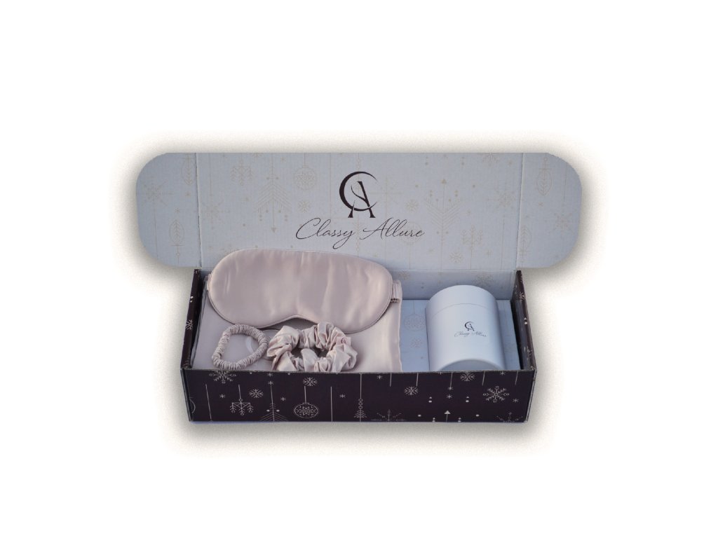 Tento exkluzivní set obsahuje 2 ks povlaku na polštář, masku na spaní a gumičky velikosti S a L, vše vyrobeno z prvotřídního hedvábí, které podporuje zdraví pokožky i vlasů. Ideální dárek pro každého, kdo ocení luxusní péči a pohodlí během spánku. Obdarujte své blízké elegancí, která z každé noci udělá zážitek.