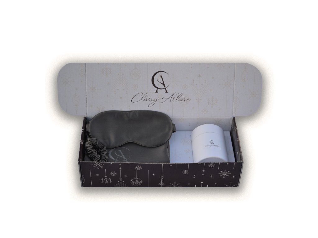 Dárkový set v antracitově šedé barvě - maska, povlak, gumička, svíčka
