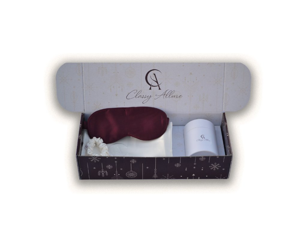Dopřejte svým blízkým jedinečný vánoční dárek s hedvábnou sadou ve krémově vínové barvě.